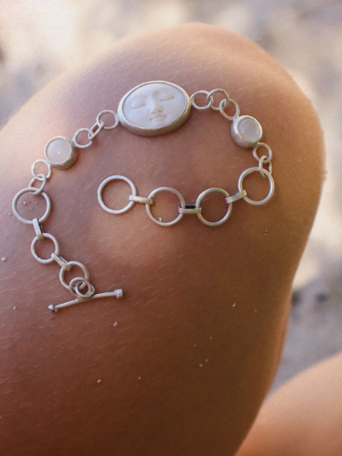 FITS SMALL / MEDIUM WRIST // Moonstone & hand-carved bone moon